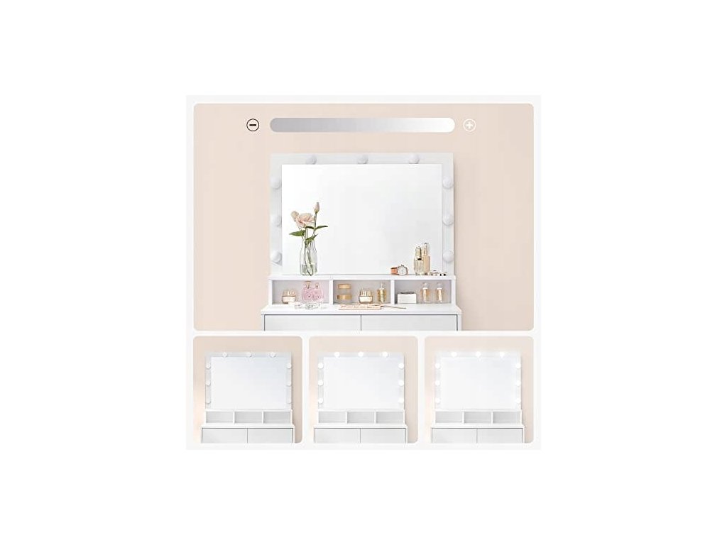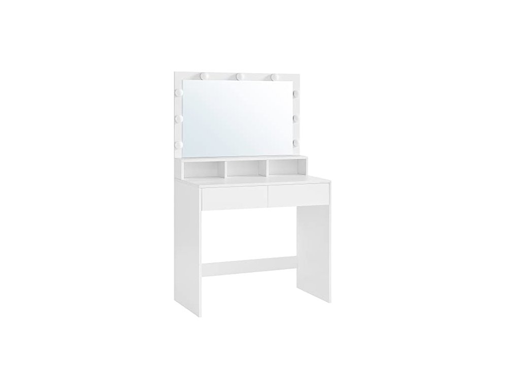 VASAGLE komódasztal világítással, skandináv stílusban, fehér színben
